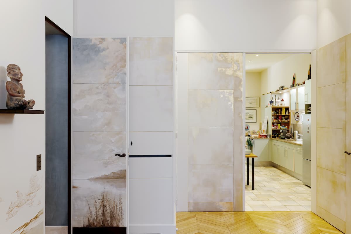 En collaboration avec le cabinet d’architecture Wonderland Productions, HUGGY a rénové ce très bel appartement Haussmannien situé dans le 7ème arrondissement de Paris, près des Invalides. Une attention toute particulière a été portée sur les éclairages, notamment dissimulés dans les faux plafonds pour mettre en valeur les tableaux et sculptures.